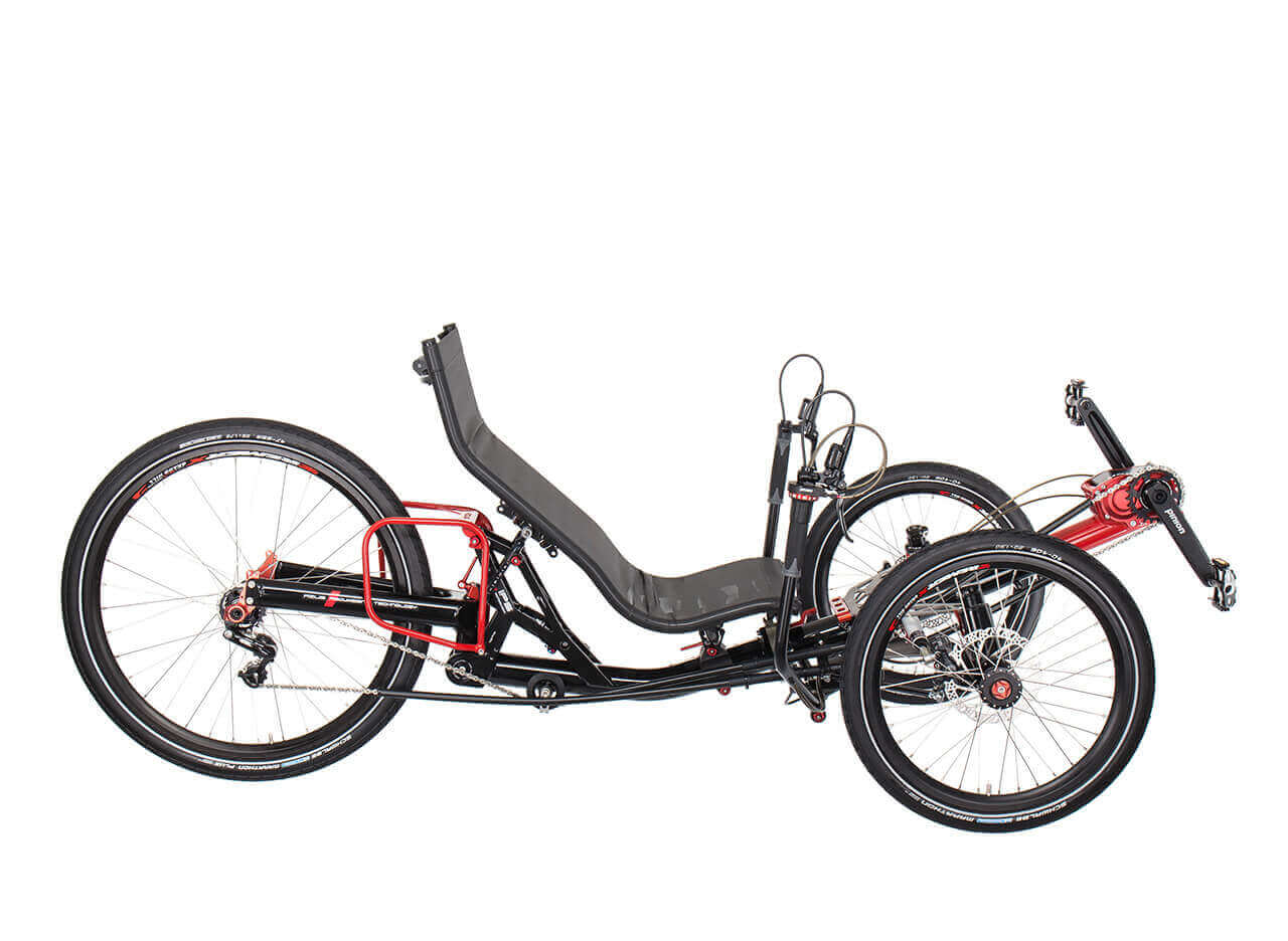Azub Ti-FLY 26Beim dem Liegerad Azub Ti-Fly 26 trifft Spitzenqualität auf atemberaubende Form und hervorragende Fahreigenschaft. Es sticht neben seiner Titan- Vorderradfederung, einer hervorragenden Verarbeitung, einer stabilen Lenkung, der revolutionären Konstruktion der Hinterradgabel mit 157 mm breiter Nabe und durchgehender Syntace-Steckachse hervor.Geeignet ist dieses Trike für die asphaltierte Straße. Falls wir Ihr Interesse an einem Liegerad geweckt haben, nehmen Sie gerne Kontakt mit uns auf oder vereinbaren Sie auf unserer Homepage direkt einen persöhnlichen Beratungs- / Probefahrttermin. Die Abbildungen können Sonderausstattungen enthalten die nicht im Preis mit inbegriffen sind, da wir für Sie Ihre individuelle Konfiguration zusammenstellen! Technische Beschreibung: - Hinterrad 26 Zoll - Vorderräder 20 Zoll - Antrieb Shimano Cues 2x10 - Trommelbremsen Sturmey Archer 90mm - Standard Netz Sitz Größe L - Rahmenfarbe schwarz matt - Titan- Vorderradfederung weich - Stahlfeder- Dämpfer DNM DV22 - Bereifung Marathon Racer 1,5" - Standard Laufräder -Rahmen zum Transport teilbar (optionales Faltsystem möglich) - zzgl. 100,-Euro Überführungskosten vom Hersteller zum Händler Farben, weiteres Zubehör sowie andere Ausstattungsmerkmale auf Anfrage! |